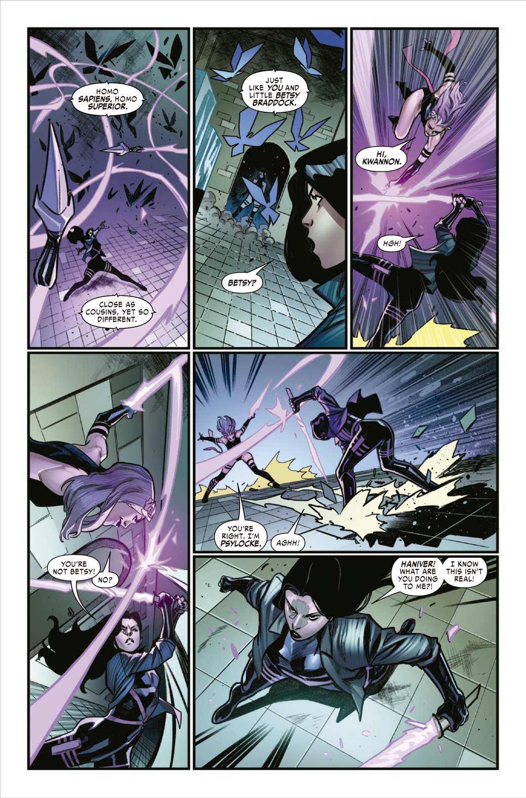 Alyssa: That’s spoiler territory. All I can say is I love Revanche. I think she’s great. I love that weird moment where she shows up the very first time and it’s like the Spider-Man pointing meme. I love a complicated identity swap story. I just feel like turnabout’s fair play. If Betsy’s in Kwannon’s body, I love seeing Kwannon in Betsy’s body. That’s kind of just how I feel about all of this. It’s so messy, but in a way that I love. I love mess, like Marie Kondo.